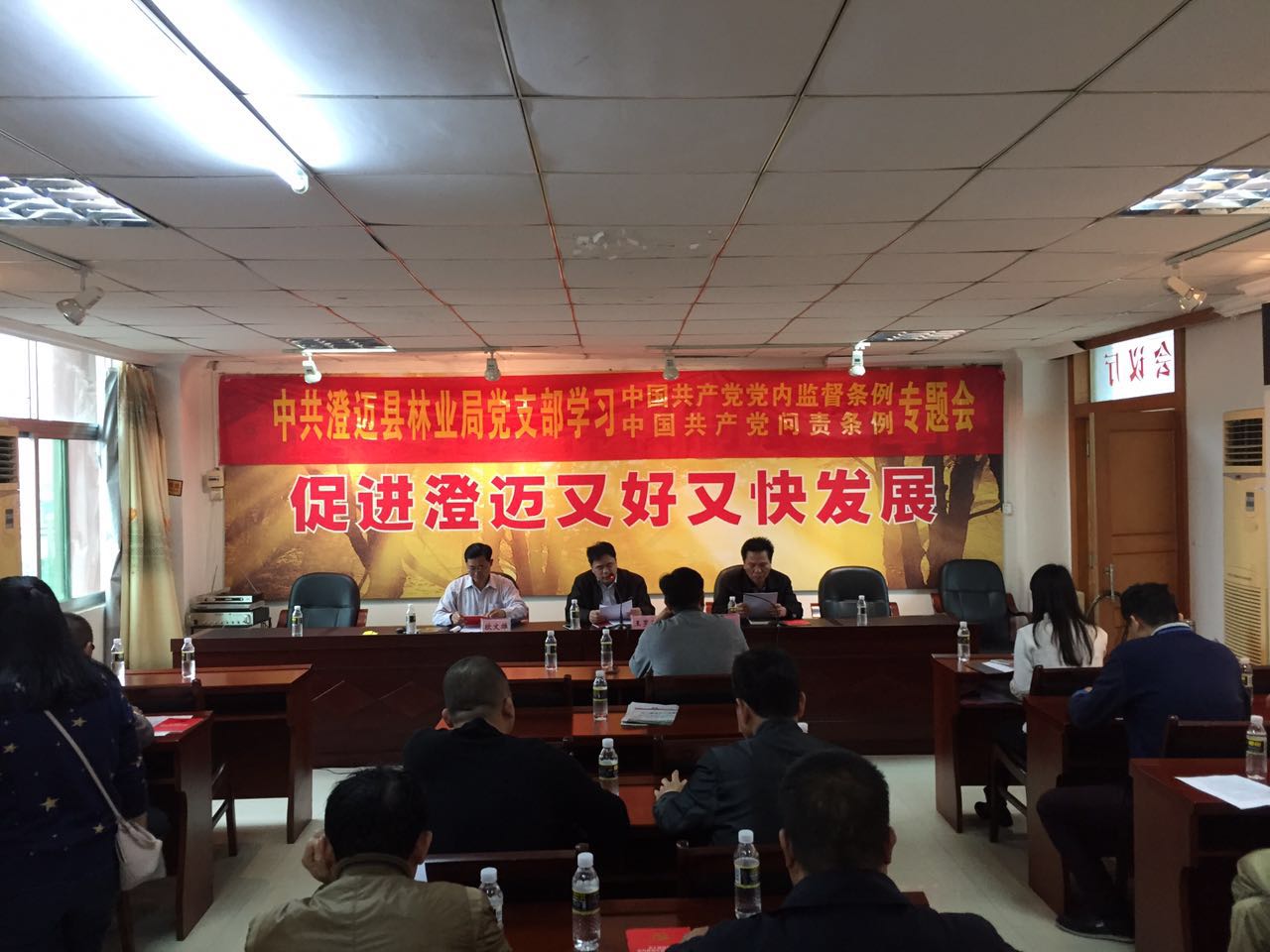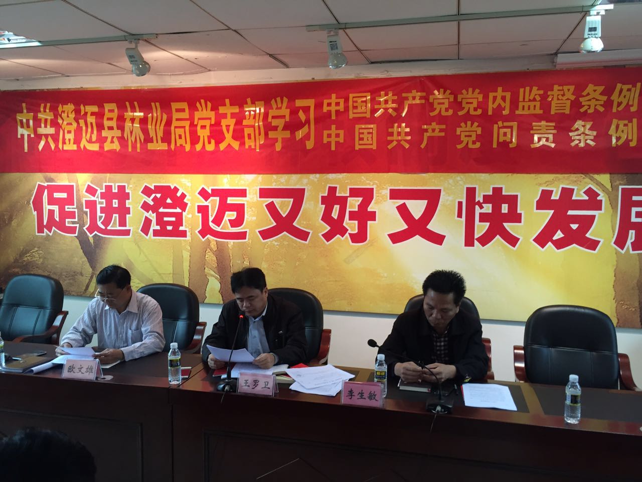 林业局党支部书记王罗卫向全体党员干部、预备党员宣读了《中国共产党问责条例》,条例主要分为四个部分:一是指导思想、原则和适用范围;二是违纪与纪律处分;三是纪律处分运用规则;四是对违法犯罪党员的纪律处分。全员认真聆听,认真记录,认真学习。