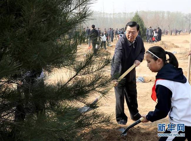 图为张高丽在植树。新华社记者王晔摄